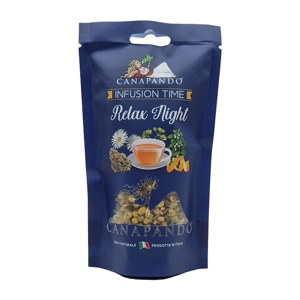 Ingredienti: Tiglio, Camomilla , Melissa, Arancio dolce, Canapa. Confezione 40 grammi